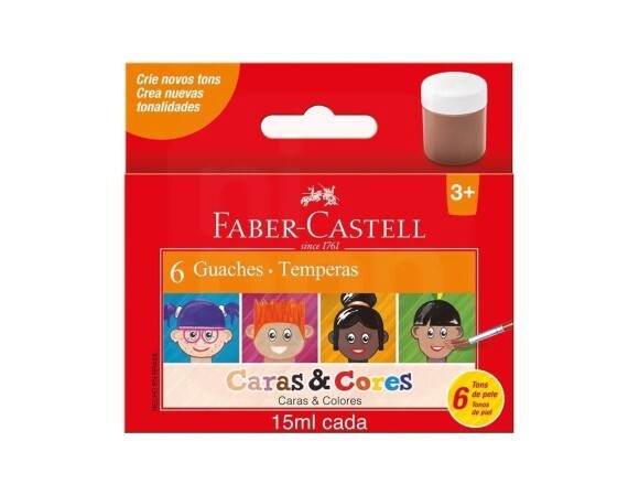 Tinta Guache 6 Cores Tons de Pele 15ml Caras e Cores - Faber-Castell